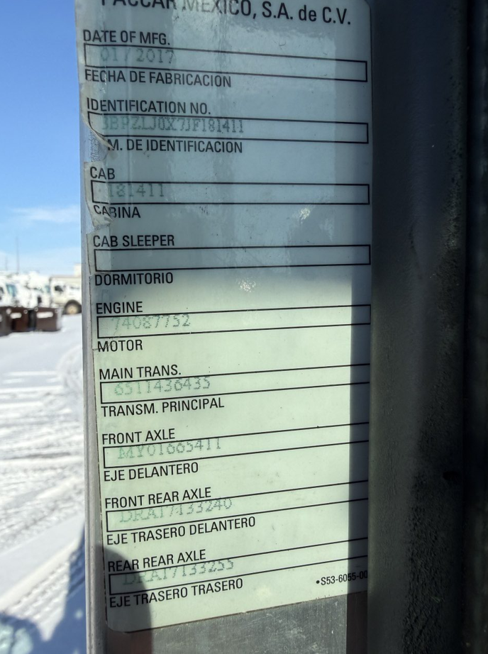 - Chassis VIN #: 3BPZLJ0X7JF181411