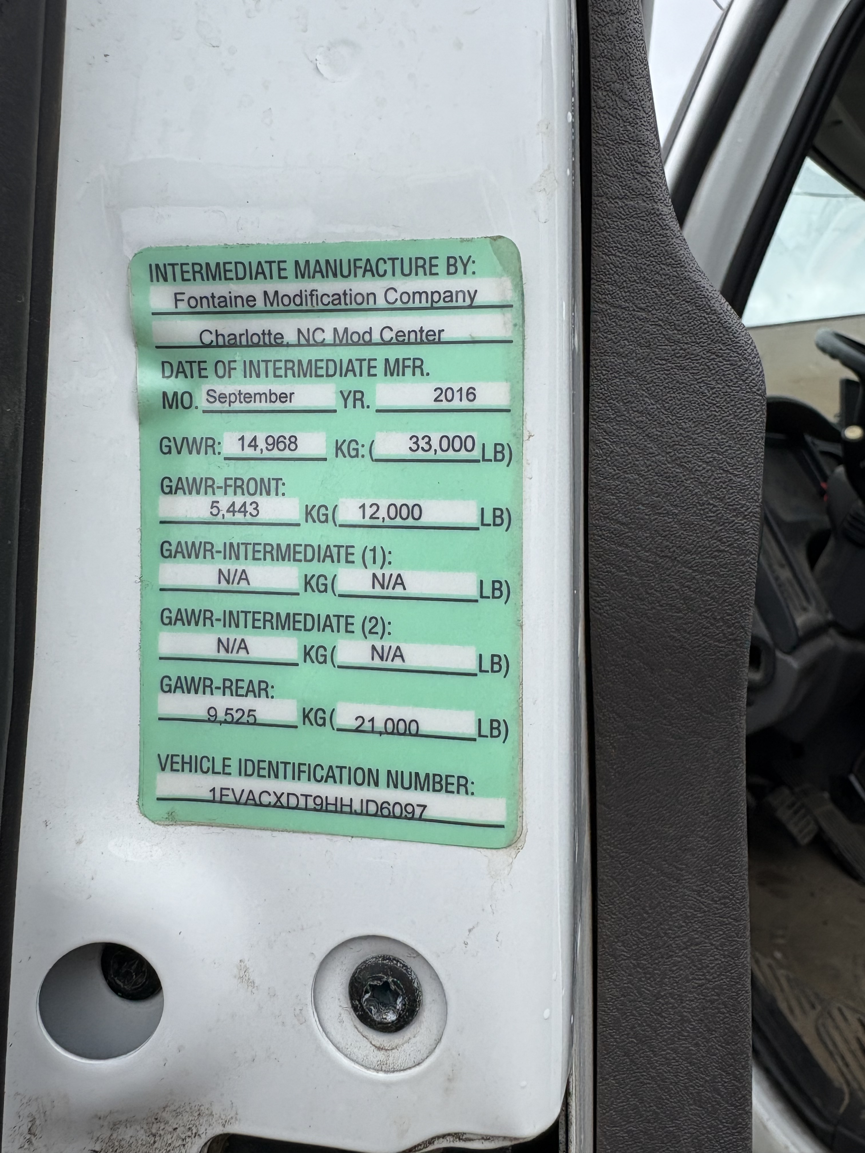 Chassis VIN #: 1FVACXDT9HHJD6097